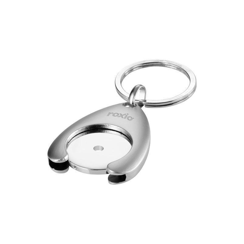 Żeton o wymiarach 1 euro z otworem Ø 6 mm oraz oprawką - idealny, gdy szukamy monety do wózka w supermarkecie.