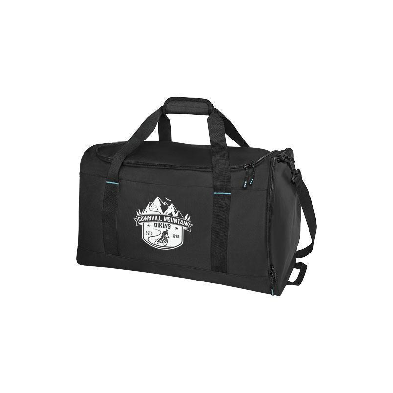 Ekologiczna torba podróżna z plastiku z recyclingu z certyfikatem GRS wykonana w 55 % z materiałów pochodzących z recyklingu. Posiada dużą kieszeń główną zapinaną na zamek błyskawiczny, wzmocniony panel dolny, boczną kieszeń z siateczki i rozszerzalną kieszeń na przedmioty suche i mokre zapinaną na zamek. Posiada małą kieszeń wewnętrzną zapinaną na zamek służącą jako organizer, zdejmowany i wyściełany pasek na ramię, uchwyty z wyściełanym zapięciem na rzep i dodatkowy uchwyt na dole po prawej stronie.
