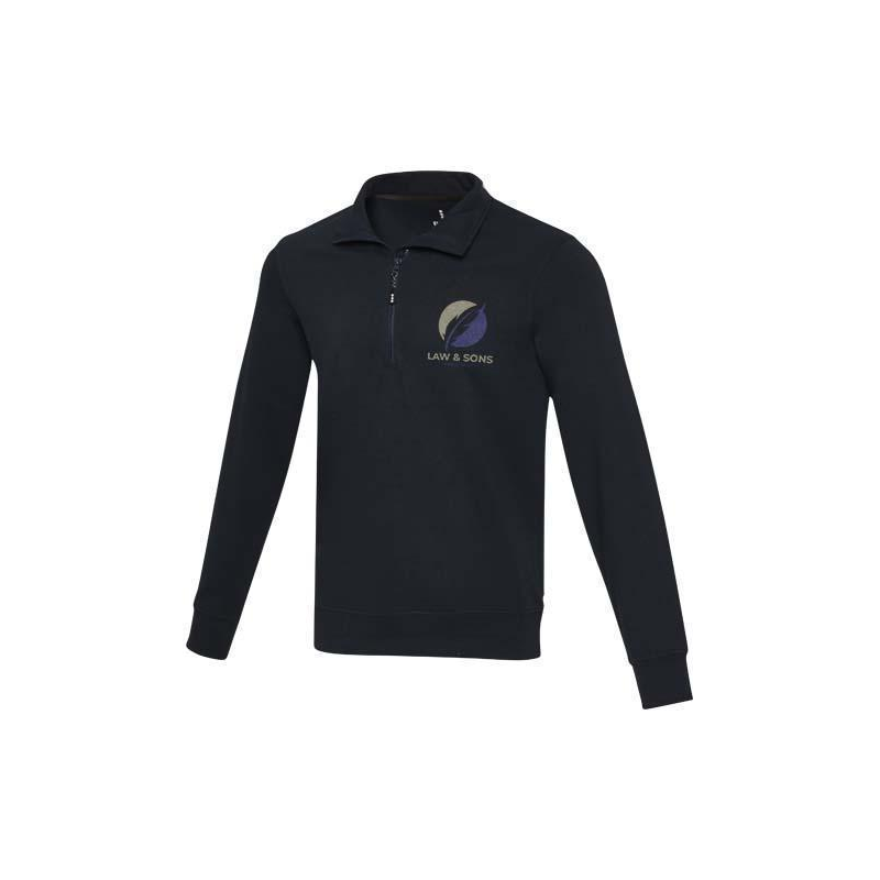 Sweter unisex Tin z zamkiem błyskawicznym Aware™ jest wykonany w 50% z bawełny organicznej i w 50% z bawełny z recyklingu. Funkcjonalny zamek błyskawiczny o długości 1/4 zapewnia wszechstronność i wygodę, umożliwiając łatwe zakładanie swetra i regulację komfortu. Sweter zawiera włókna Cyclo® pochodzące z recyklingu, w przypadku których wykorzystano wstępnie posortowane odpady, które mają wpływ na kolor przędzy. Włókna te nie tylko zmniejszają zapotrzebowanie na surowce pierwotne, ale także są przejawem zaangażowania w tworzenie obiegu zamkniętego, stanowiąc realny przykład zmniejszania ilości odpadów i promując gospodarkę w obiegu zamkniętym. Do każdego swetra dołączony jest również znacznik Aware™. Ta innowacyjna funkcja pozwala użytkownikom prześledzić za pomocą kodu QR pochodzenie produktu i pokonaną przez niego drogę, zwiększając przejrzystość łańcucha dostaw i wspierając silniejszy związek między produktem a jego procesem produkcyjnym.;50% Bawełna z recyklingu, 50% Poliester recyklowany, 280 g/m2