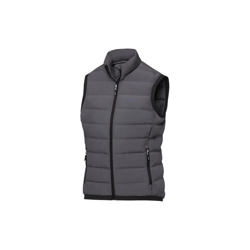 Damska ocieplana kamizelka puchowa Caltha to wszechstronny i przyjazny dla środowiska element odzieży wierzchniej. Wykonana z dwuwarstwowej tkaniny poliester pongee o gramaturze 164 g/m² 750T. Matowa tkanina w połączeniu z pikowaniem termicznym nadaje kamizelce nowoczesny wygląd, jednocześnie zwiększając ogólną izolację. Wciel się w ekologiczną świadomość dzięki certyfikowanej izolacji RDS z puchu pochodzącego z recyklingu i piór pochodzących z recyklingu, zapewniając ciepło bez uszczerbku dla standardów etycznych. Dzięki wewnętrznej klapie przeciwwiatrowej, osłonie i elastycznym mankietom z płaskiej dzianiny, ta kamizelka zapewnia maksymalną ochronę przed żywiołami. Przednie kieszenie z zamkiem błyskawicznym zapewniają wygodę i funkcjonalność. Postaw na styl i wartości etyczne dzięki kamizelce Caltha, idealnej na każdą przygodę na świeżym powietrzu lub do noszenia na co dzień. Ta kamizelka ma dopasowany krój zapewniający kobiecy wygląd.;750T woven double layer pongee100% Poliester, 164 g/m2, Padding/filling, Down insulation: Responsible Down Standard (RDS)90% Recycled down, 10% Recycled feathers, 115 g/m2