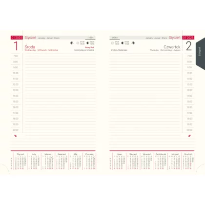 FORMAT A5; PAPIER BLOKU KREMOWY; REGISTER NADRUKOWANY; UKŁAD BLOKU DZIENNY; MARKA VIVO
