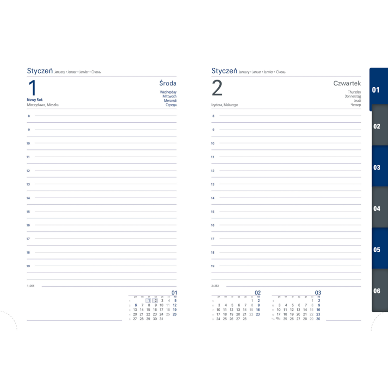 MARKA NEVRO; REGISTER WYCINANY; PAPIER BLOKU BIAŁY; FORMAT A5; UKŁAD BLOKU DZIENNY