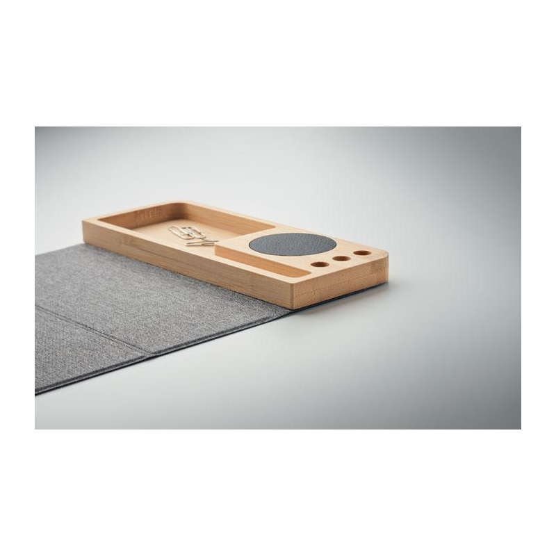Elegancja spotyka technologię w harmonijnym połączeniu natury i innowacji. Bezprzewodowa ładowarka bambuso to nie zwykły gadżet - to ambasador Twojej marki, który codziennie przypomina o wartościach, jakie reprezentujesz. Wykonana z szlachetnego bambusa, z charakterystyczną szarą podkładką i funkcjonalnym organizerem, staje się nieodłącznym elementem każdego biurka, niosąc ze sobą Twój przekaz.