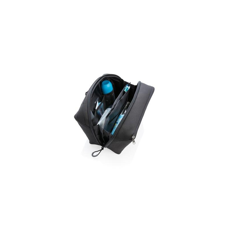 Ta stylowa kosmetyczka to nie tylko pojemnik na przybory toaletowe - to dyskretny emisariusz Twojej marki, który towarzyszy klientom w ich codziennych rytuałach. Wykonana z ekologicznych materiałów RPET, łączy świadomość ekologiczną z praktycznym luksusem, szepcząc o wartościach Twojej firmy przy każdym użyciu.