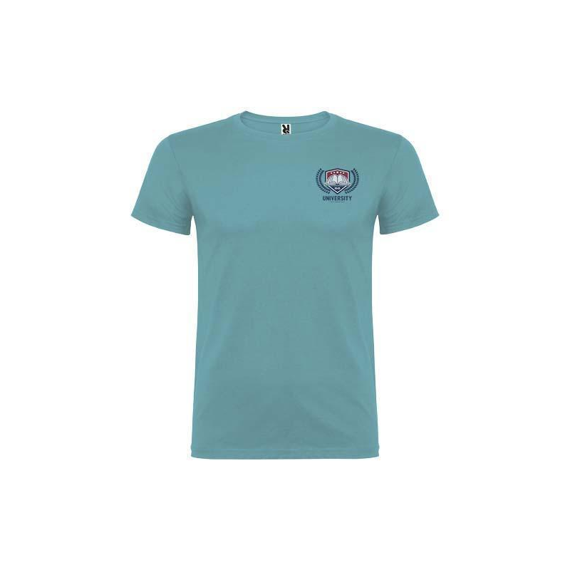 T-shirt z krótkim rękawem. Podwójna tkanina z dodatkiem elastanu przy kołnierzu. Wzmocnione, kryte szwy na karczku. Brak szwów bocznych w wersji dla dorosłych. Usuwalna metka.;Splot Single Jersey100% Bawełna, 155 g/m2