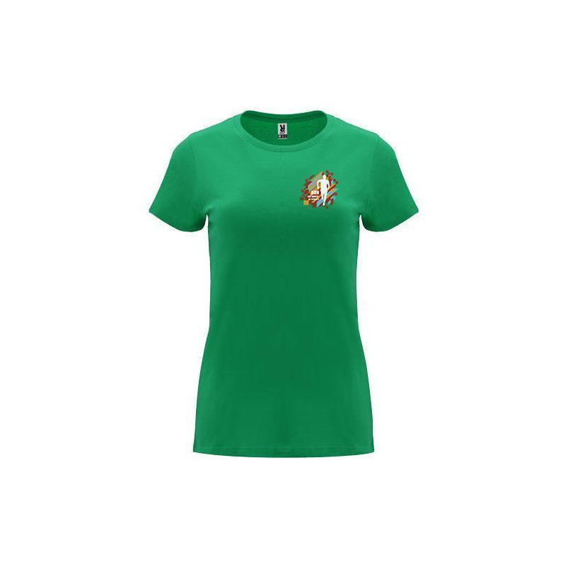 Damska dopasowana koszulka z krótkim rękawem. Okrągły prążkowany dekolt 1x1. Wzmocnione, kryte szwy na kołnierzu. Usuwalna metka. ;Splot Single Jersey100% Bawełna, 170 g/m2
